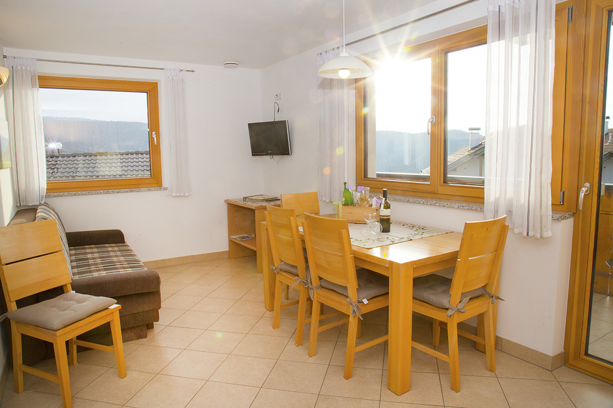 Ausstattung Wohnung „Salten“: 2 getrennte Schlafräume – 1 geräumiges Bad (Dusche, WC, Bidet) – geräumiger Wohnraum mit ausziehbarer Couch - großer Balkon zur Südseite (Tisch mit Stühlen und Liegestuhl) - Kochzeile mit Spülmaschine - Kühlschrank mit Gefrierfach- Filterkaffeemaschine - Mokkakanne – Toaster – Wasserkocher - kostenloser Internetanschluss (WLAN) - Sat-TV (LCD-Bildschirm) – Safe. Für alle Gäste steht ein gemeinsames Backrohr zur Verfügung.